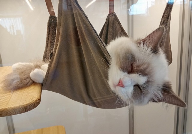 とても綺麗なお顔立ちです☆ 近くに行くと「ニャー」とおしゃべりして撫でてアピールしてくれます! お父さん6kg お母さん4.5kgでした 是非会いに来てあげてください✨ 1枚目→箕面店にて撮影(2/4) (移動してきた日に撮ったので少し緊張してる表情...) 2,3枚目→山科本店にて撮影(12/5) (ハンモックでくつろいでる姿がとっても可愛いです♡) |
