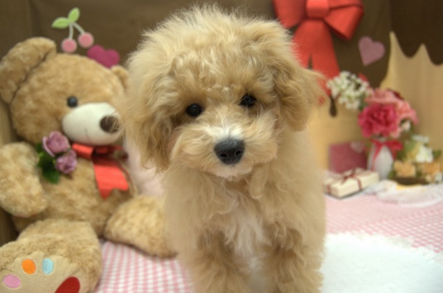 パパがビションフリーゼ、ママがトイプードルです 1枚目はトリミング後、2枚目がトリミング前のお写真になります 別人のように可愛く変身しました♡ パパとママどっちに似るか成長が楽しみな子です♪ |