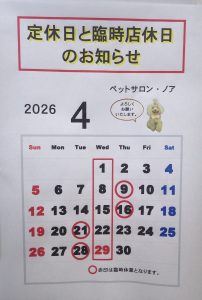 そして、七条店4月の店休日のお知らせです。